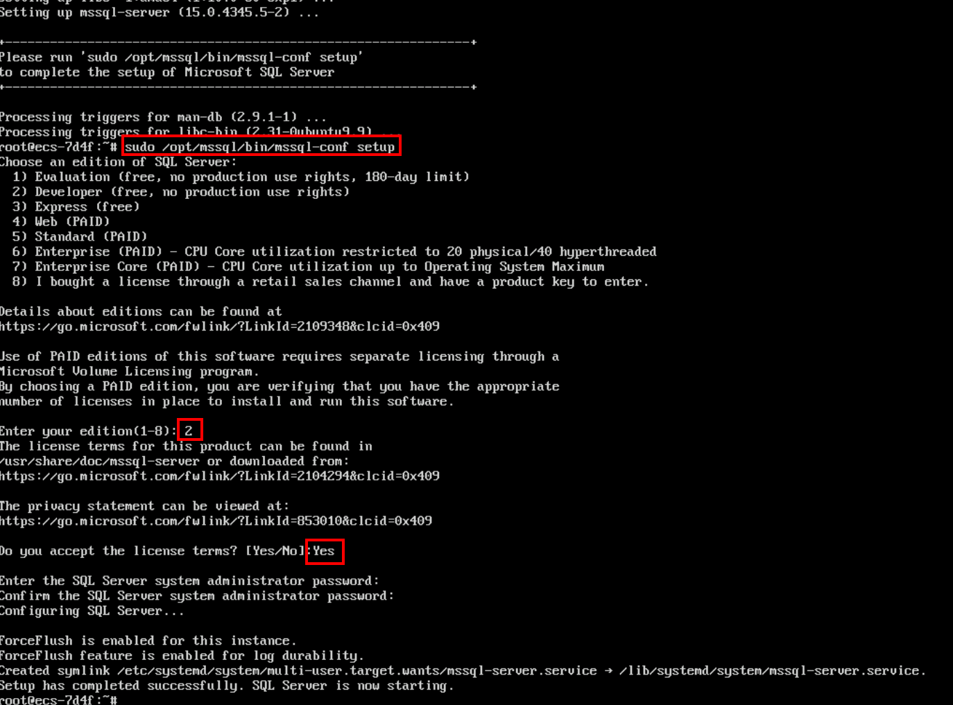 sudo /opt/mssql/bin/mssql-conf setup