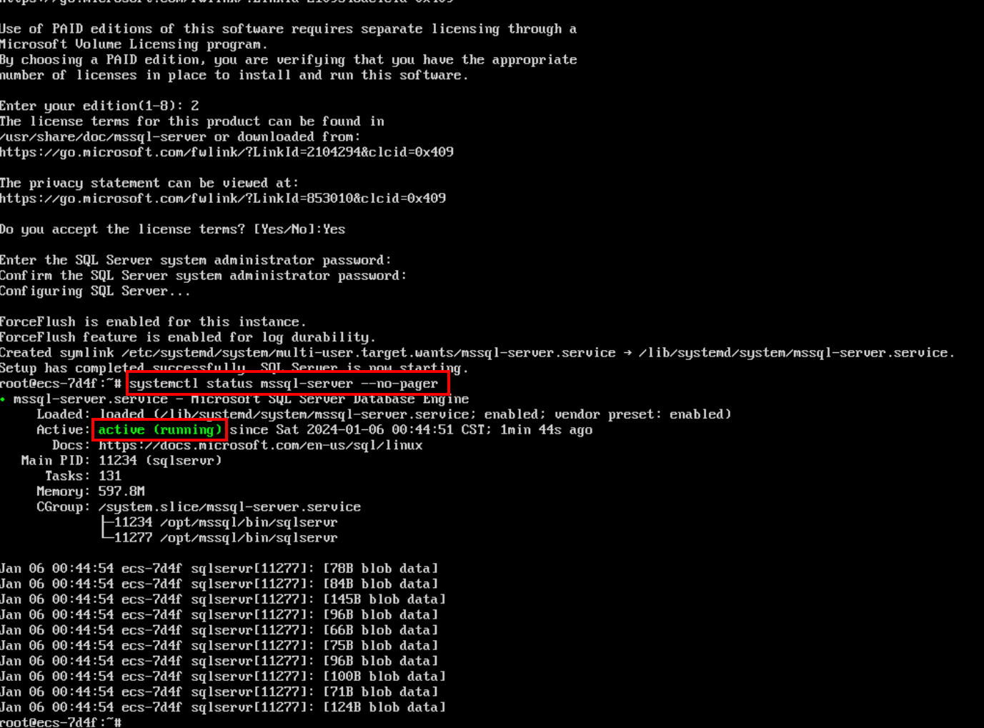 systemctl status mssql-server --no-pager