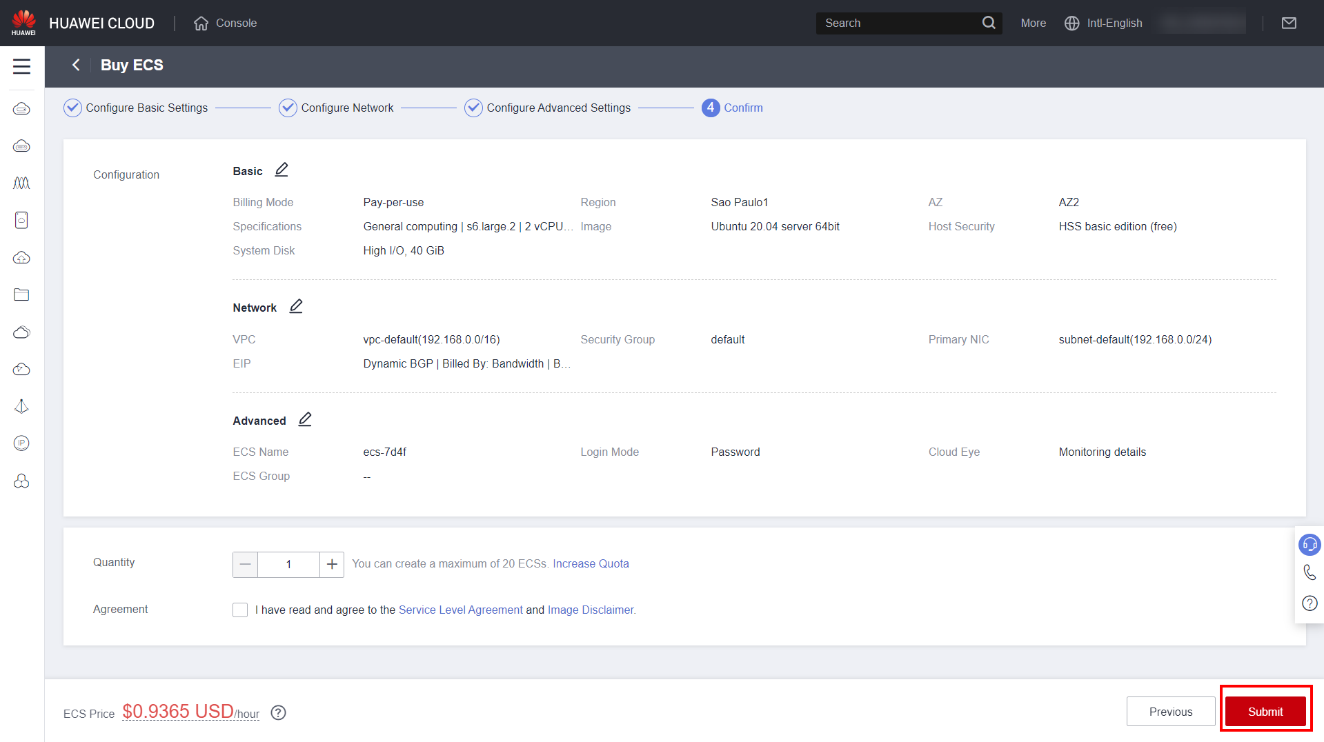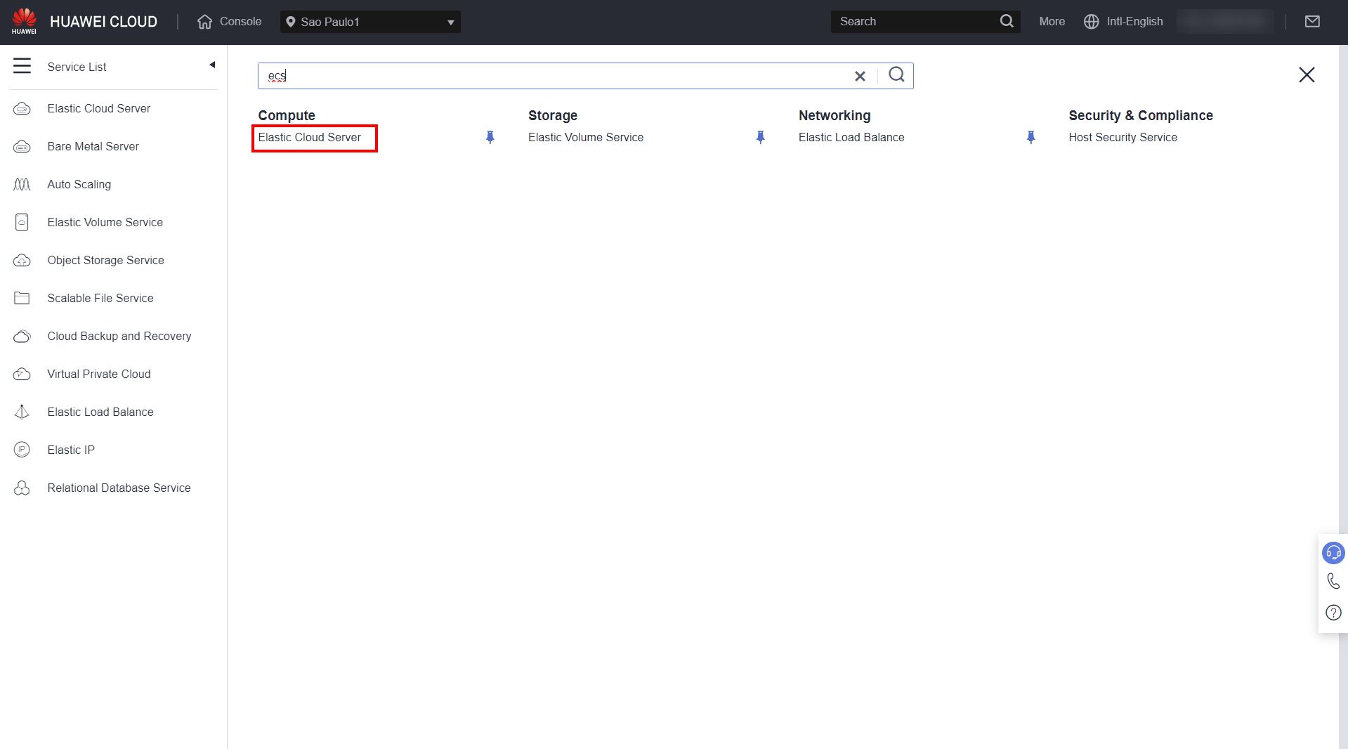 Navigate to the ECS section in the Huawei Cloud console.