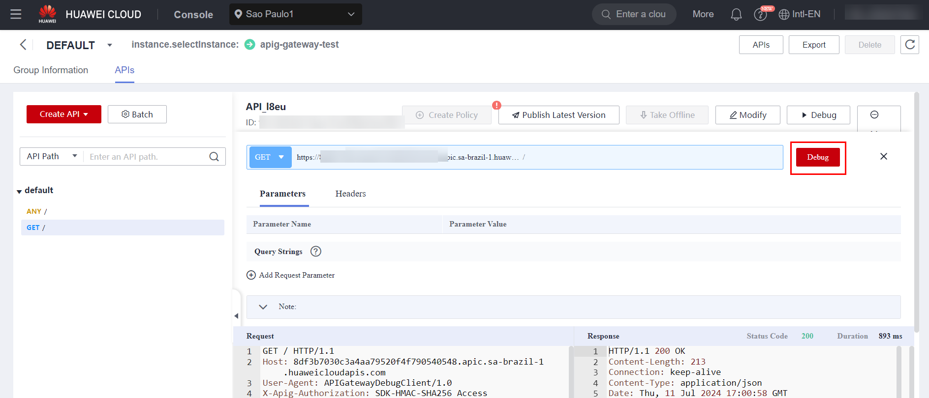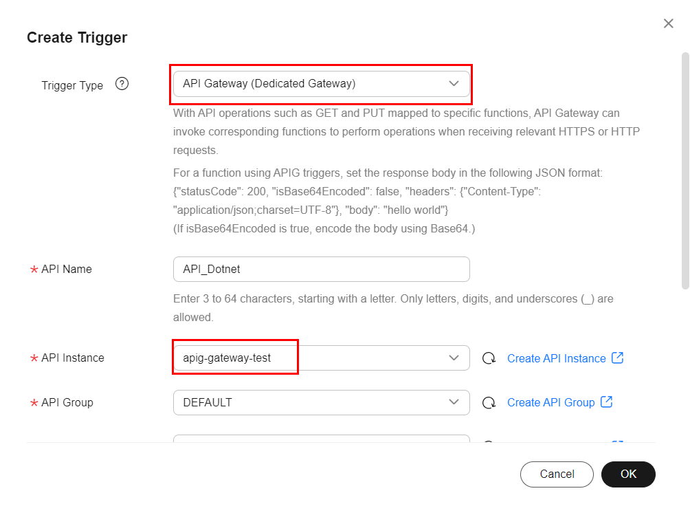In this example, a function written in .NET 8.0 was developed with a trigger by HWC’s API Gateway (APIG) so that, every time it is called, the function makes a GET request to a remote HTTP server.