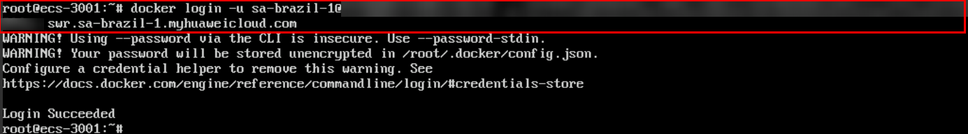 Access the machine that has the container image locally that will run in FunctionGraph and paste the command copied in item 2.0 of this document, related to Docker authentication with the HWC SWR service.