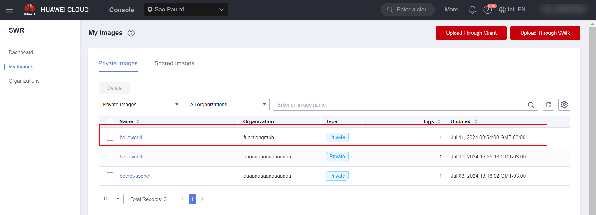 docker push swr.sa-brazil-1.myhuaweicloud.com/functiongraph/helloworld:1.0