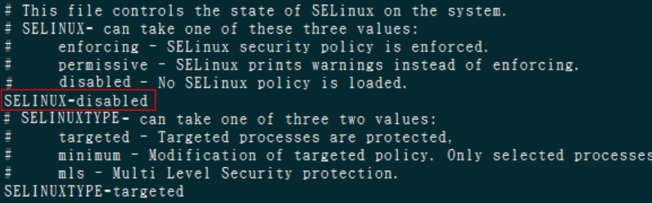 vi /etc/selinux/config