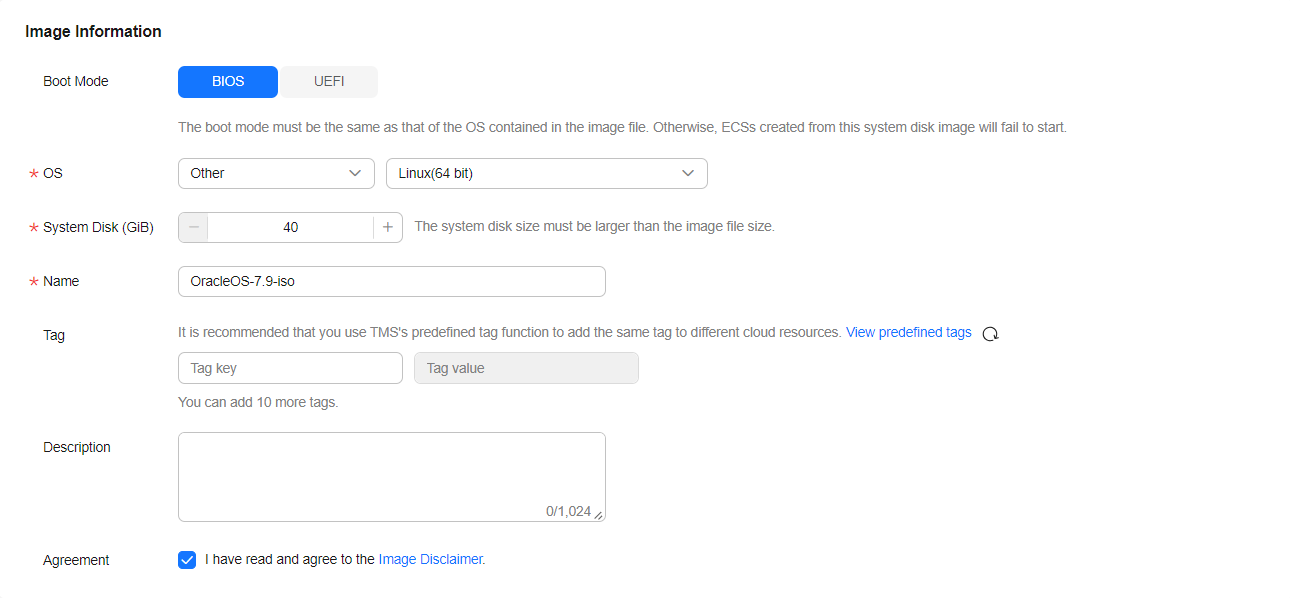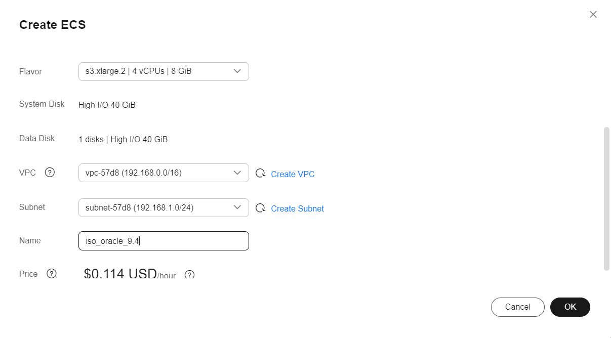 Create an ECS using the image created by importing the ISO image.