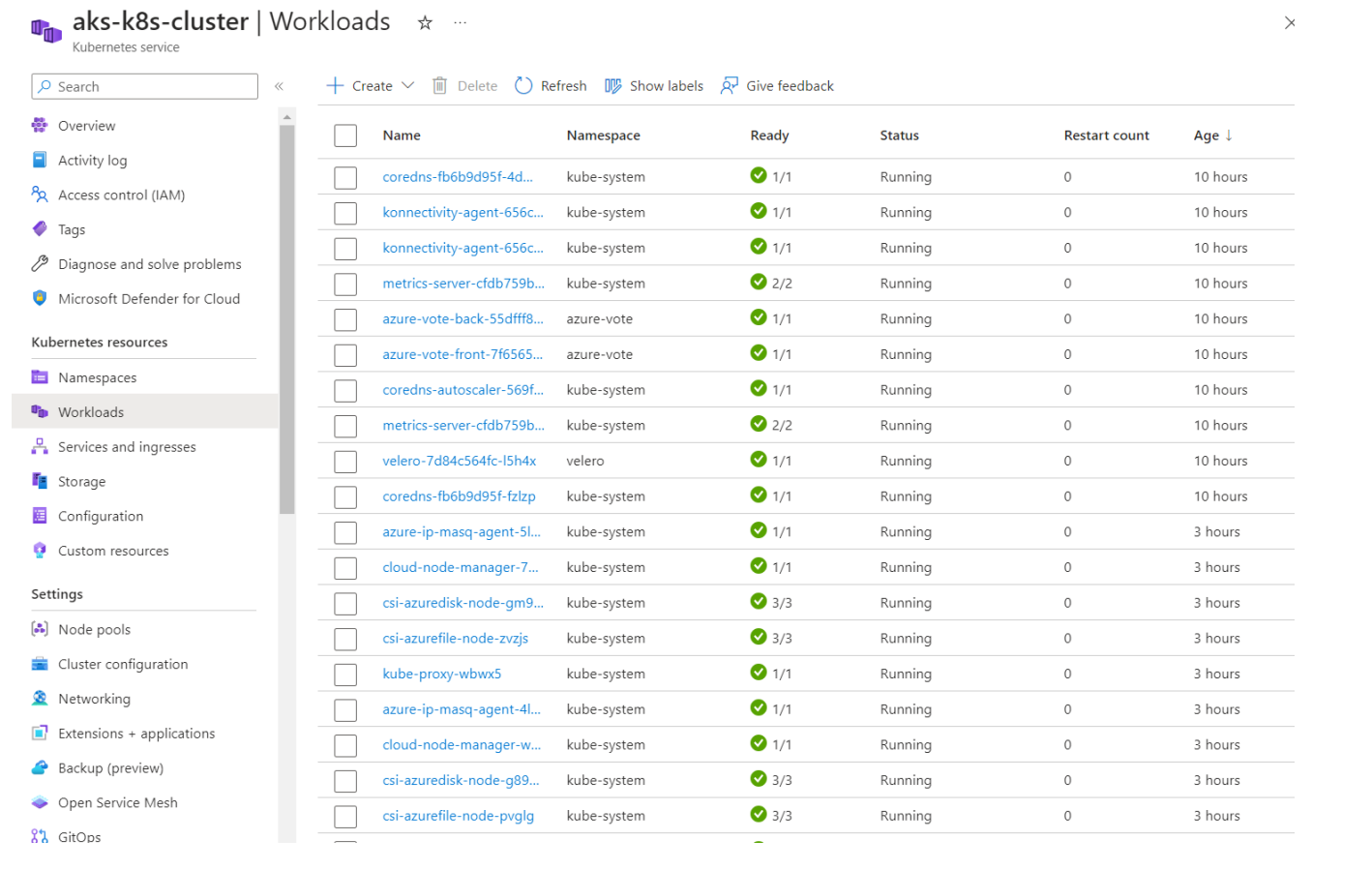 - Finally, install Velero on AKS. Check all the variables and values before starting Velero.