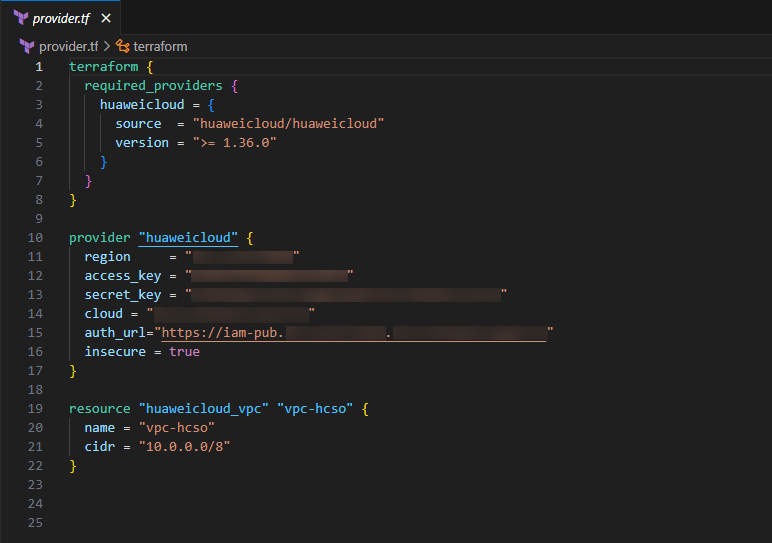 Note: Below is the official registry of the Huawei Cloud Terraform provider, compatible with both the Huawei Cloud public cloud and HCSO implementations: https://registry.terraform.io/providers/huaweicloud/huaweicloud/latest/docs. Alternatively, there is also the following registry that can be used exclusively for HCSO implementations: https://registry.terraform.io/providers/huaweicloud/hcso/latest/docs.