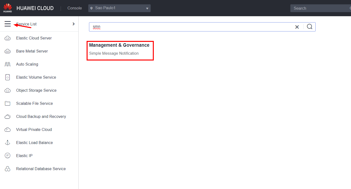 In the Alarm Notification section, you can configure a notification for alarms triggered by email, SMS, HTTP and HTTPS requests or through a trigger in FunctionGraph. If the notification only needs to be sent to the email of the account owner in the Huawei Cloud console, you can select the Account contact option in Notification Object directly. In this example, a second email address will be configured to receive notifications of Cloud Eye alarms. To do this, you must first enable the Short Message Notification (SMN) service.