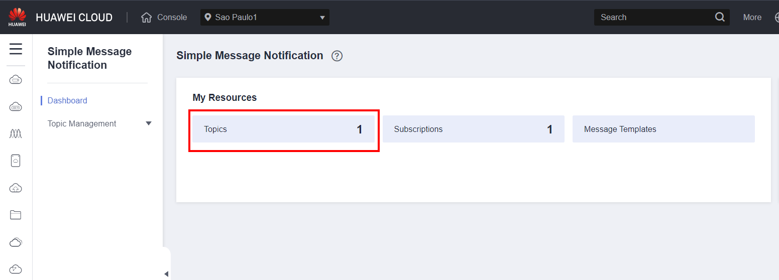 Click Topics to view the notification topics that you have created.