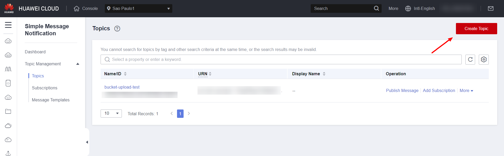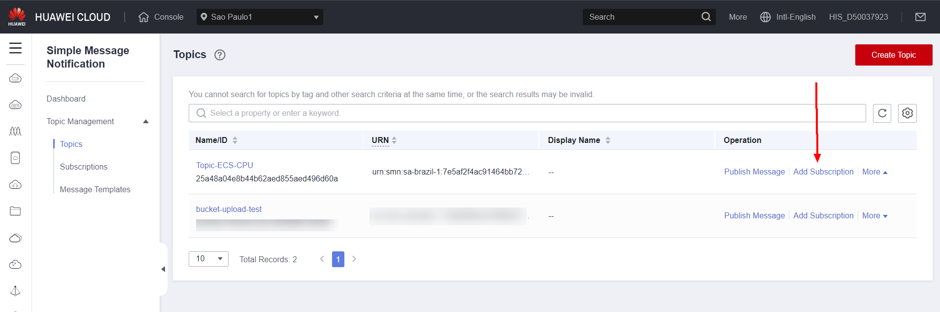 Click Create Topic to create a notification topic.