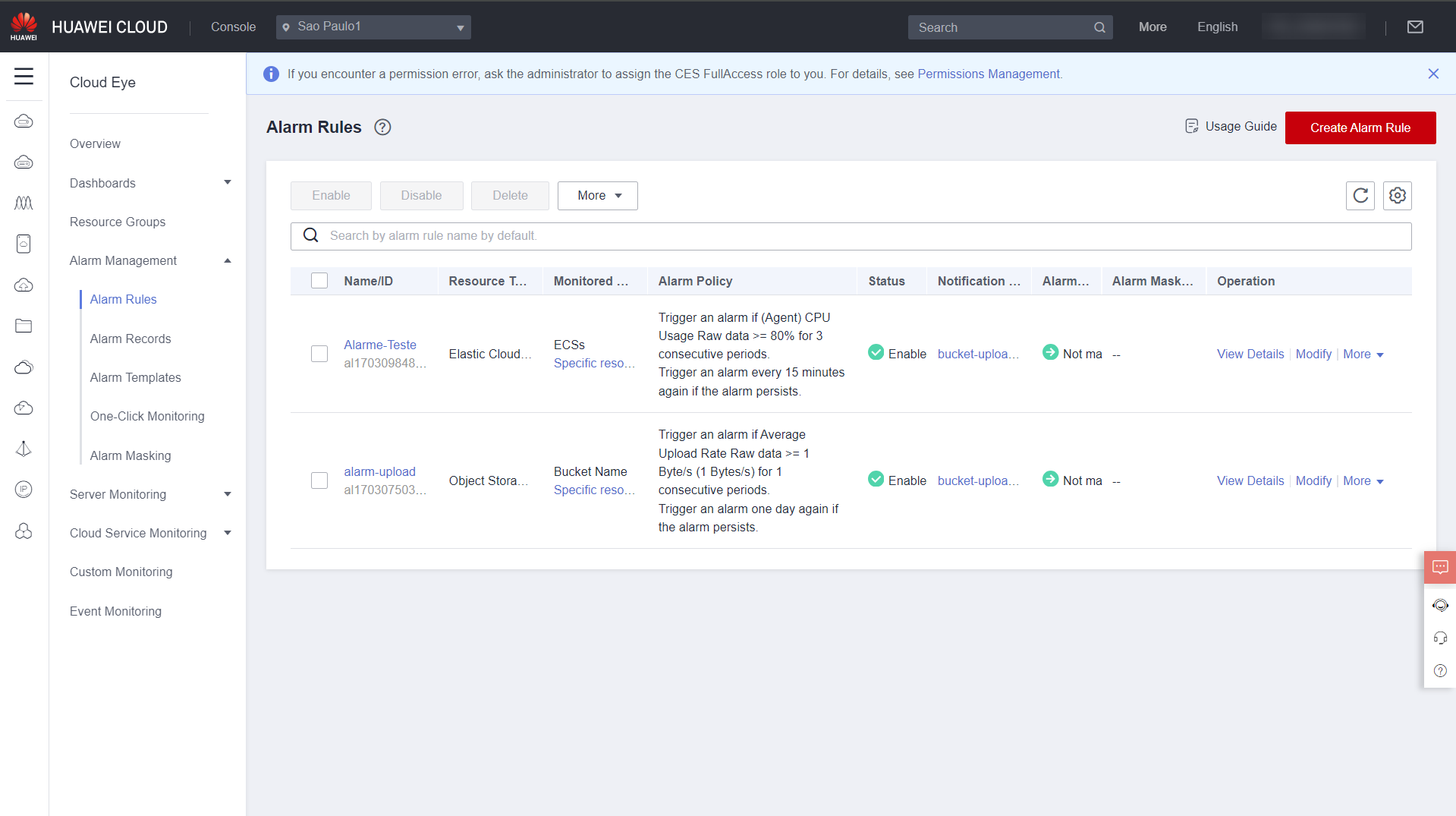 - FAQ: https://support.huaweicloud.com/intl/en-us/ces_faq/ces_faq_0059.html
