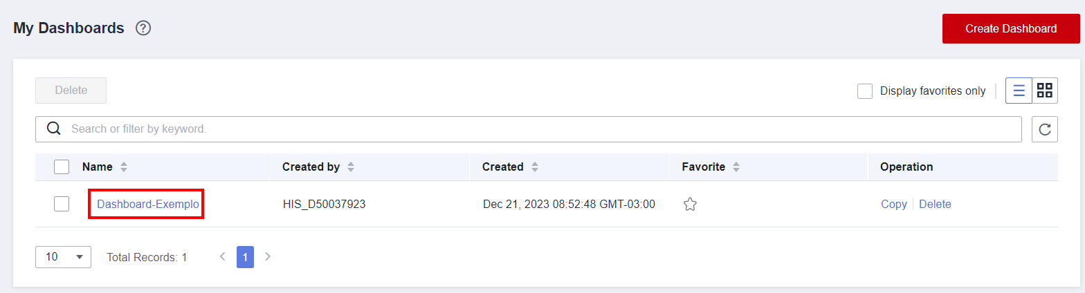 To create a dashboard, navigate to the My Dashboards section in Dashboards and click Create Dashboard.
