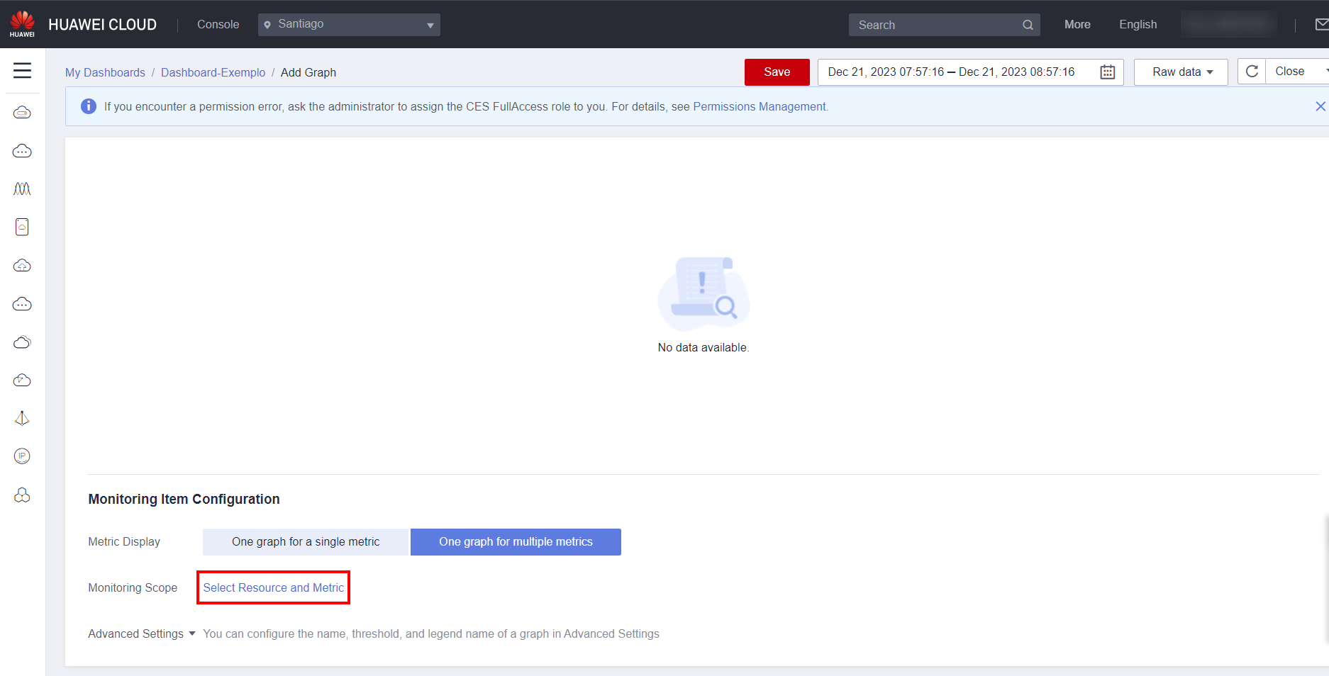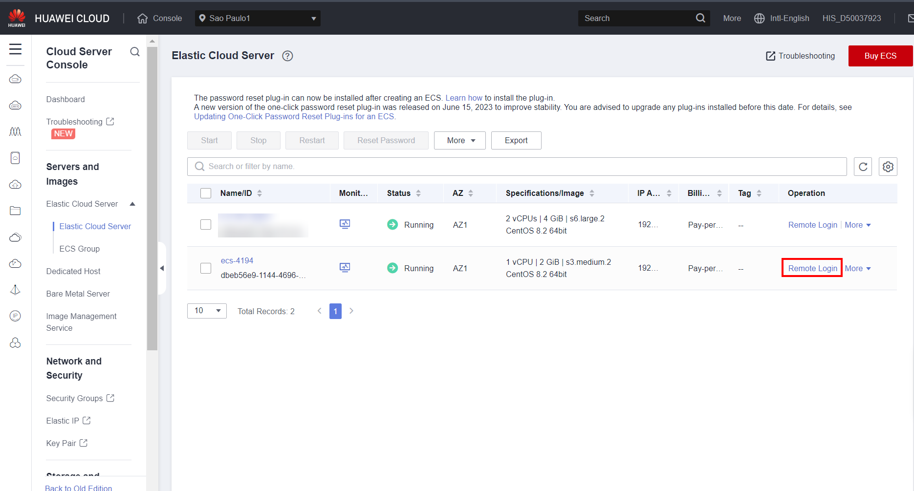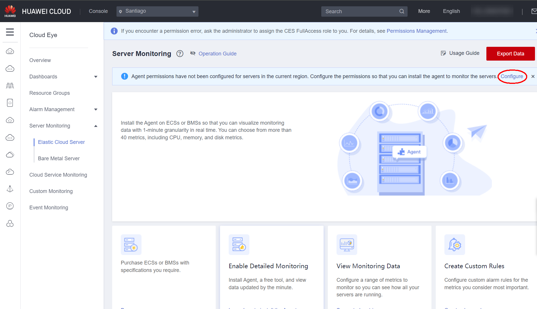 If the region where the server is located is different from LA-Santiago, you can find the list of commands by region in the following link: https://support.huaweicloud.com/intl/en-us/usermanual-ces/ces_01_0029.html