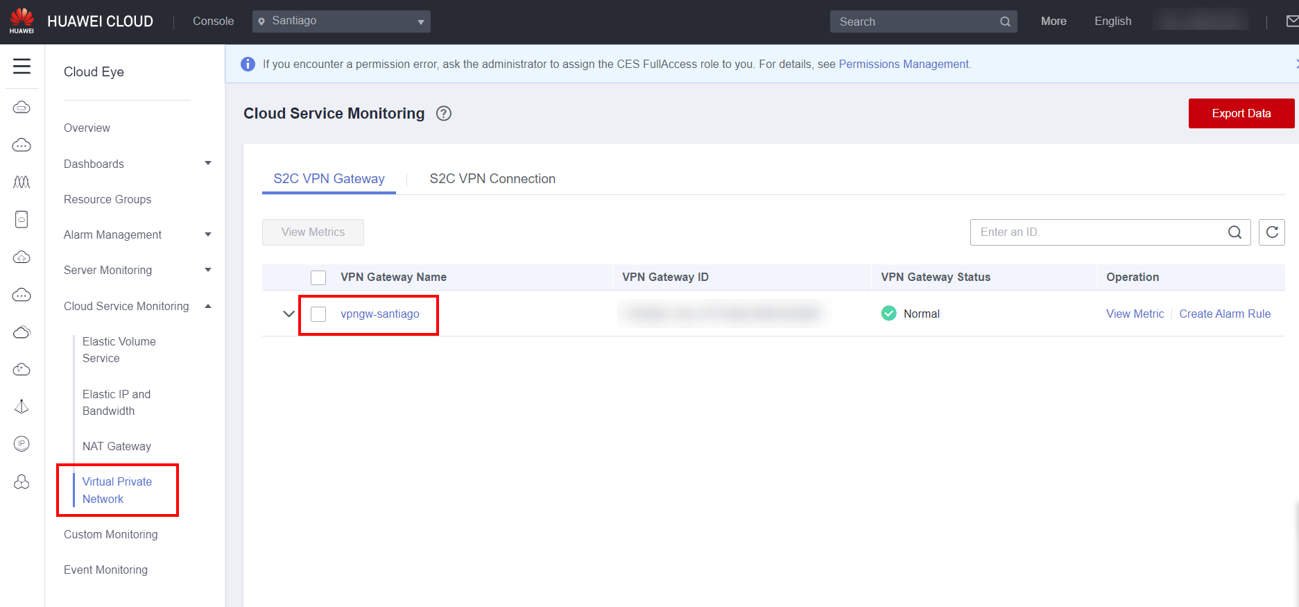 In the Cloud Service Monitoring section, dashboards for each resource of the ECS, EIP and bandwidth, NAT and VPN services are automatically created during the creation of these resources. The main monitoring metrics of these services are added in the form of a graph in this section for quick and general monitoring of these services.
