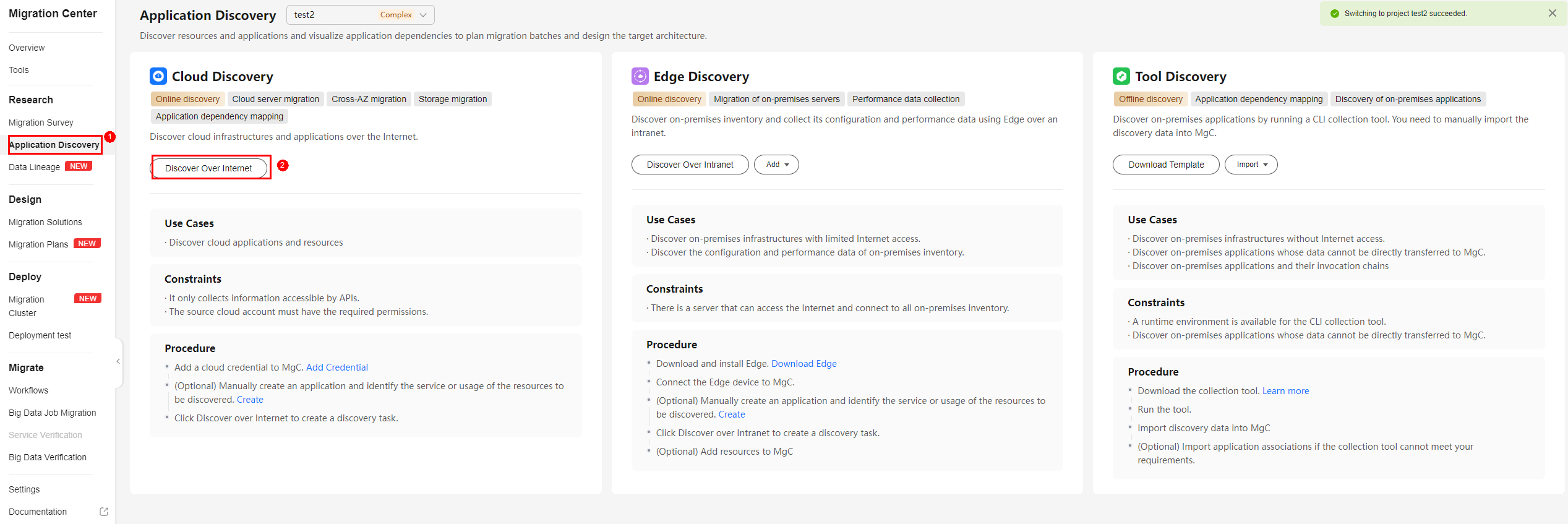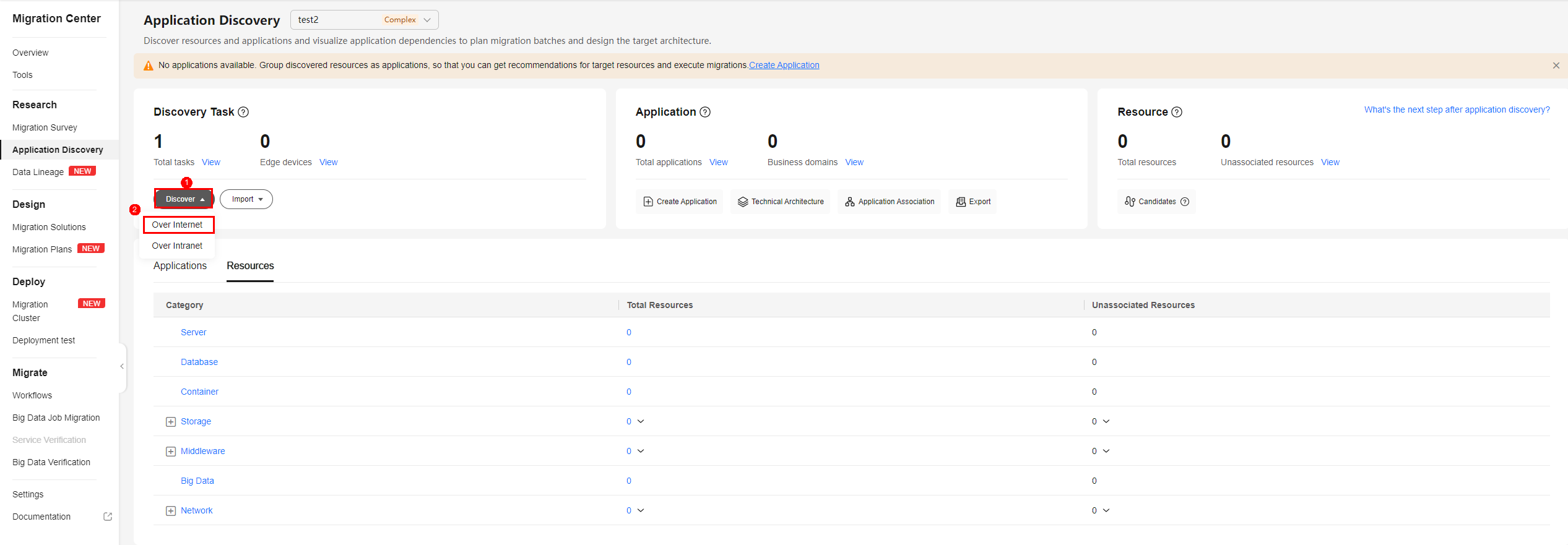 In the menu on the left, choose the Application Discovery option and click Discover Over Internet to perform resource discovery over the Internet.